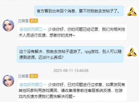 以下是第二天我在官方群跟客服反馈内容