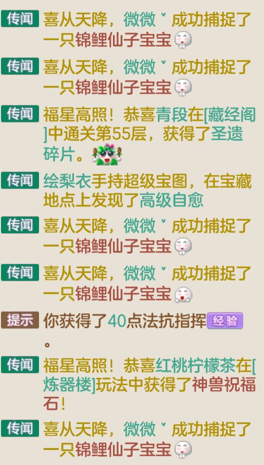 我就在公屏询问,在没有人挖宝放宝宝的情况下怎么做到这么短时间连续抓五只锦鲤