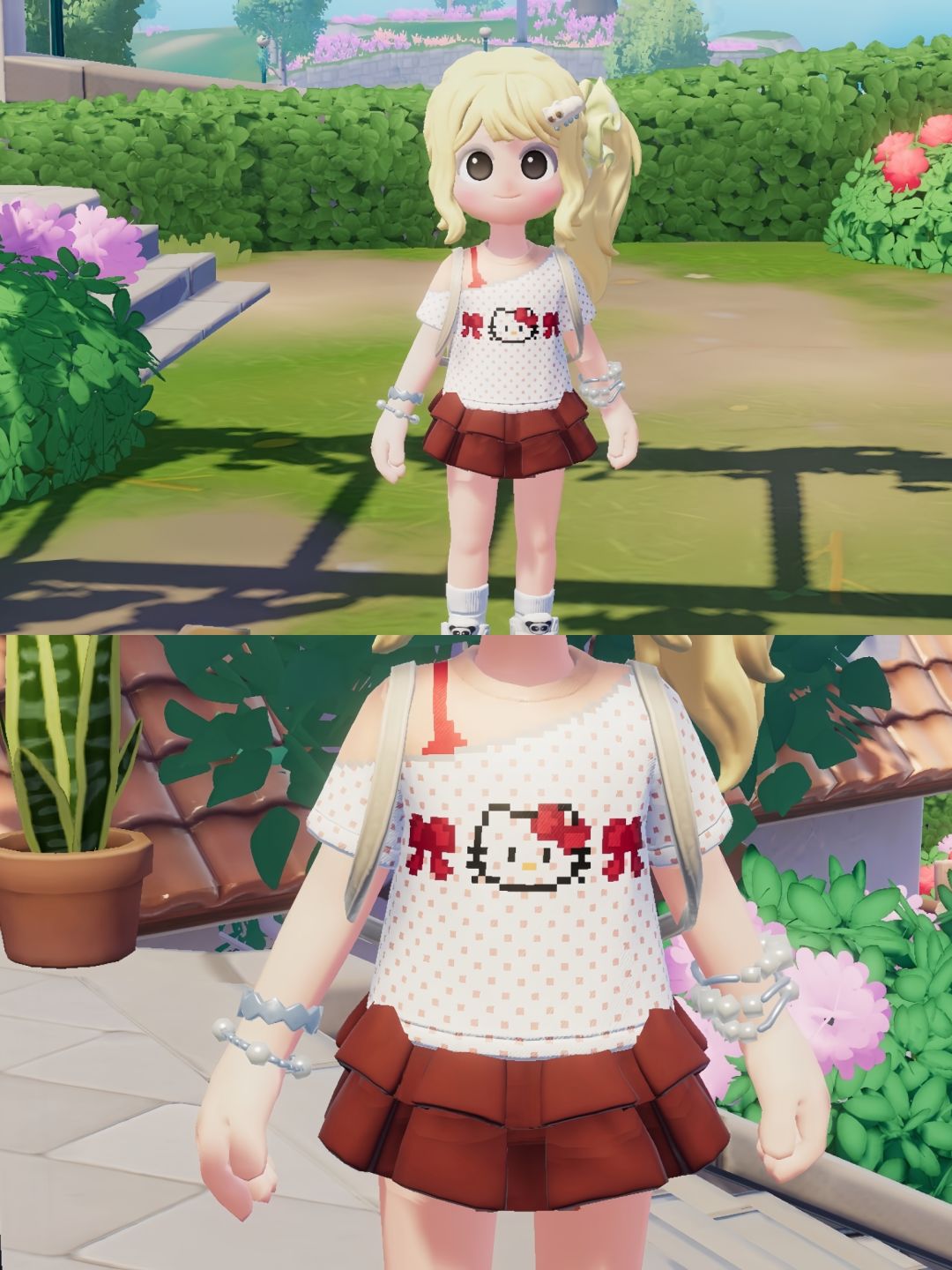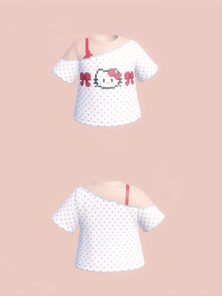 收藏起来这个Kitty斜肩短袖格子图 穿上真的很萌!