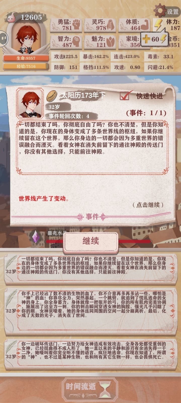 主角光环都是图四所示,其他两个比贵族线的差了点,打女神没死过,一命打过的。但是还是点多一下死逃,防止前面打小BOSS死了