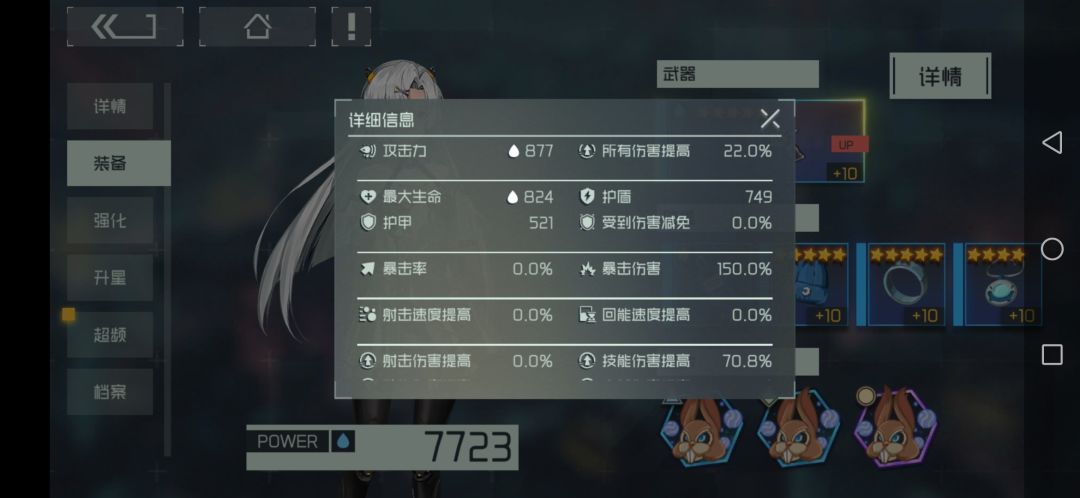 两张图分别是装备库的详情和进冒险后(无挂件)的详情,属性差别很大,装备库里人格的详情页没有显示套装加成,武器被动,小队等级加成和副人格属性加成。希望不用进冒险就能显示所有加成。