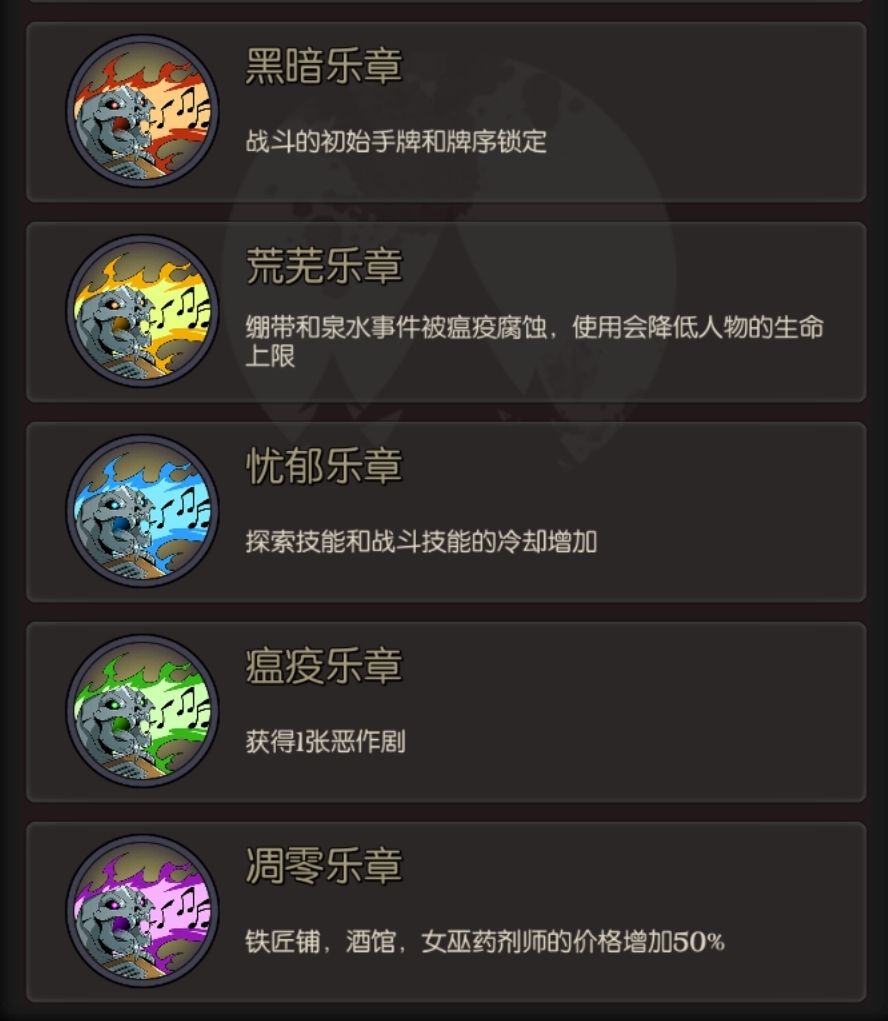 看似5个乐章,实际真正有影响的只有凋零乐章和黑暗乐章,这两个乐章对游戏的影响最大。