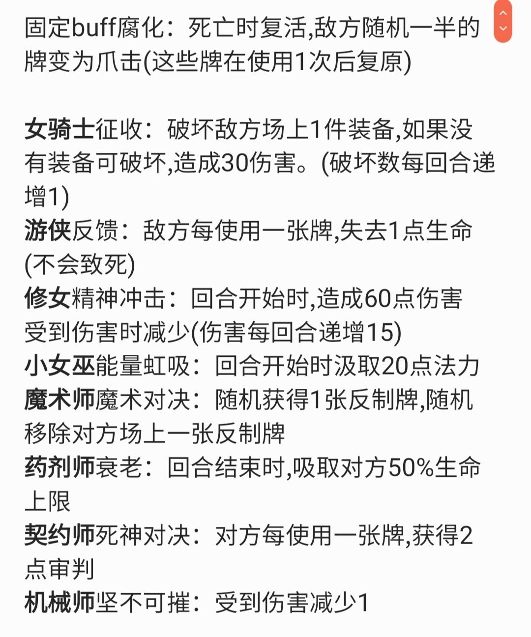 注:森灵复活后会清自己的buff,即复活后忏悔,激怒等状态会重置。变爪击的牌仅包括牌库和手上的牌,不包括坟地的牌。