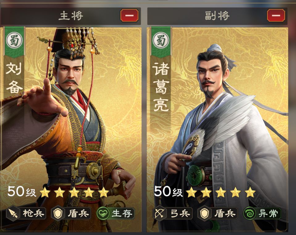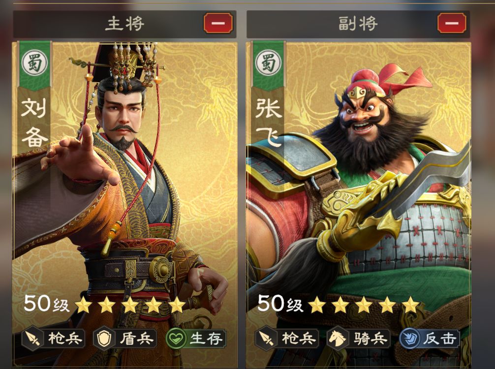 刘备一般是作为副将使用,兵种可基于主将灵活调整。如果搭配诸葛亮,可选择飞熊军,提高异常伤害;组反击枪可选择白毦兵,如果搭配许褚组生存盾,可选择虎贲卫。