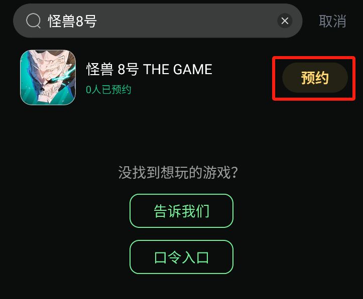第三步:奇游内搜索【怪兽8号】点击预约 即可预约游戏