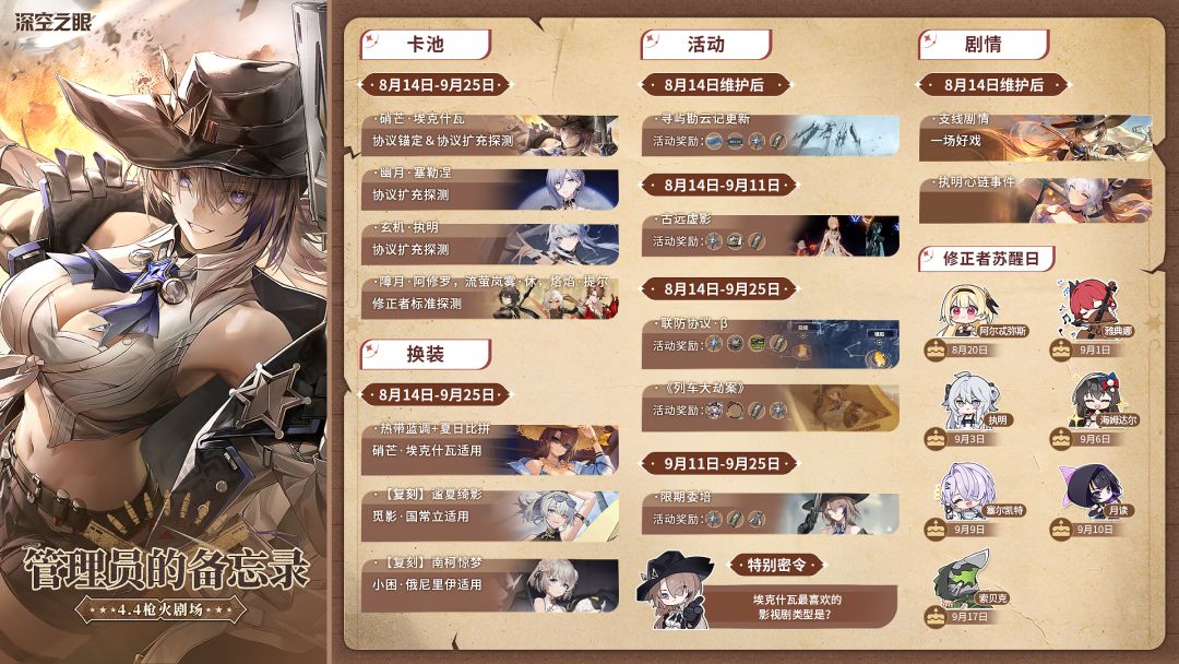 4.4版本「枪火剧场」现已开启!本吨为管理员整理了一份版本活动备忘录,欢迎管理员收藏查阅~