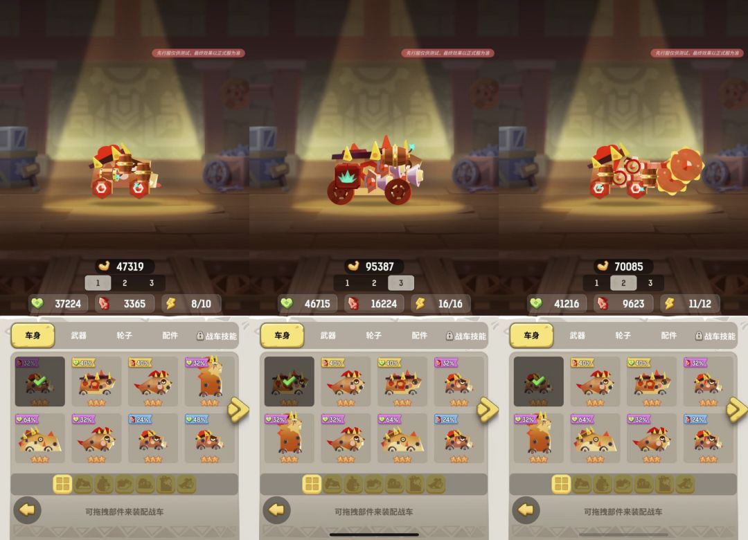 首先战车有6个车型,分别是霸王车,嘟嘟车,乌龟车,猪猪车,老虎车,鼠鼠车,这六种车之间存在相互克制。