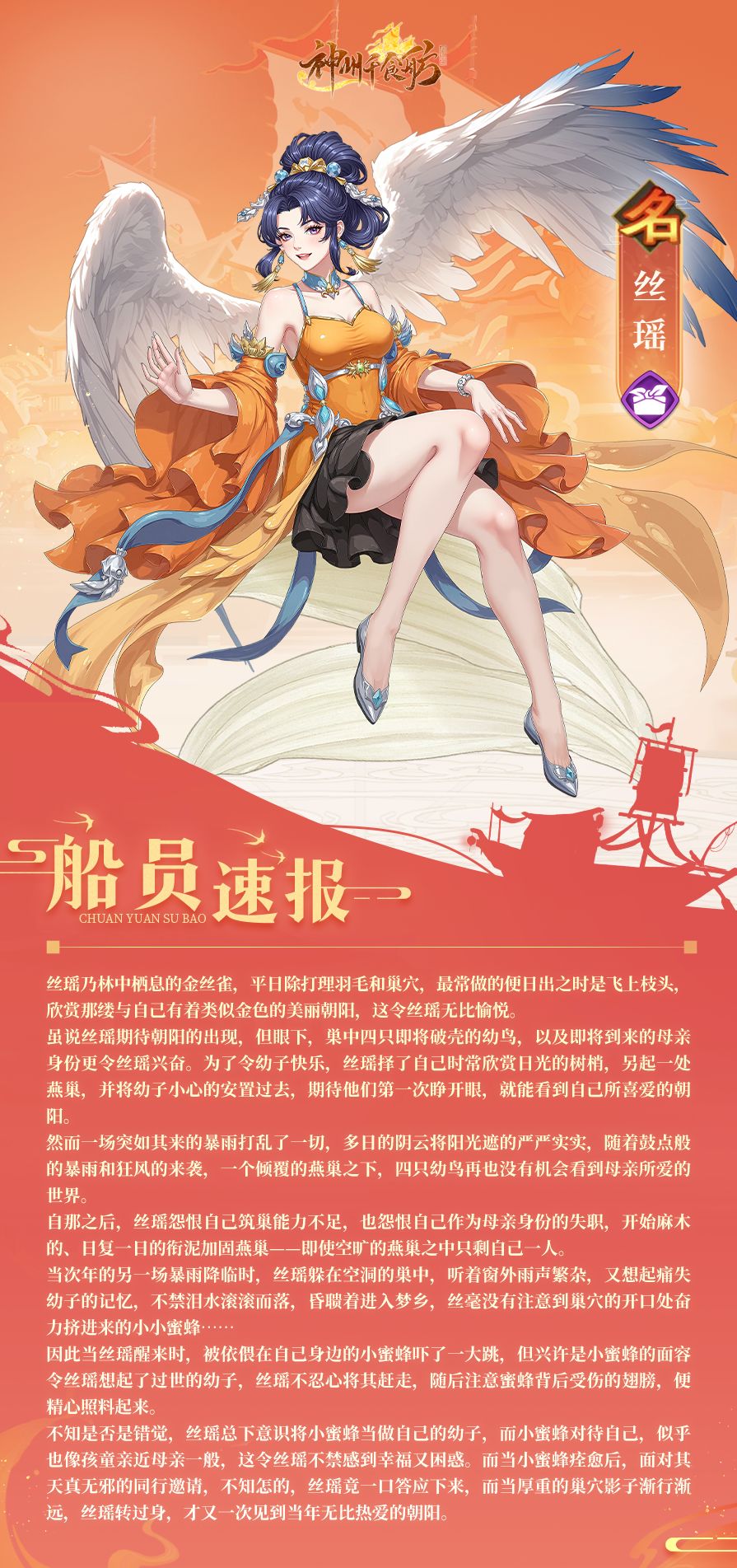 ①丝盏渔钓:舫主可以通过消耗活动道具进行钓鱼,有一定几率获得新名级船员<丝瑶>