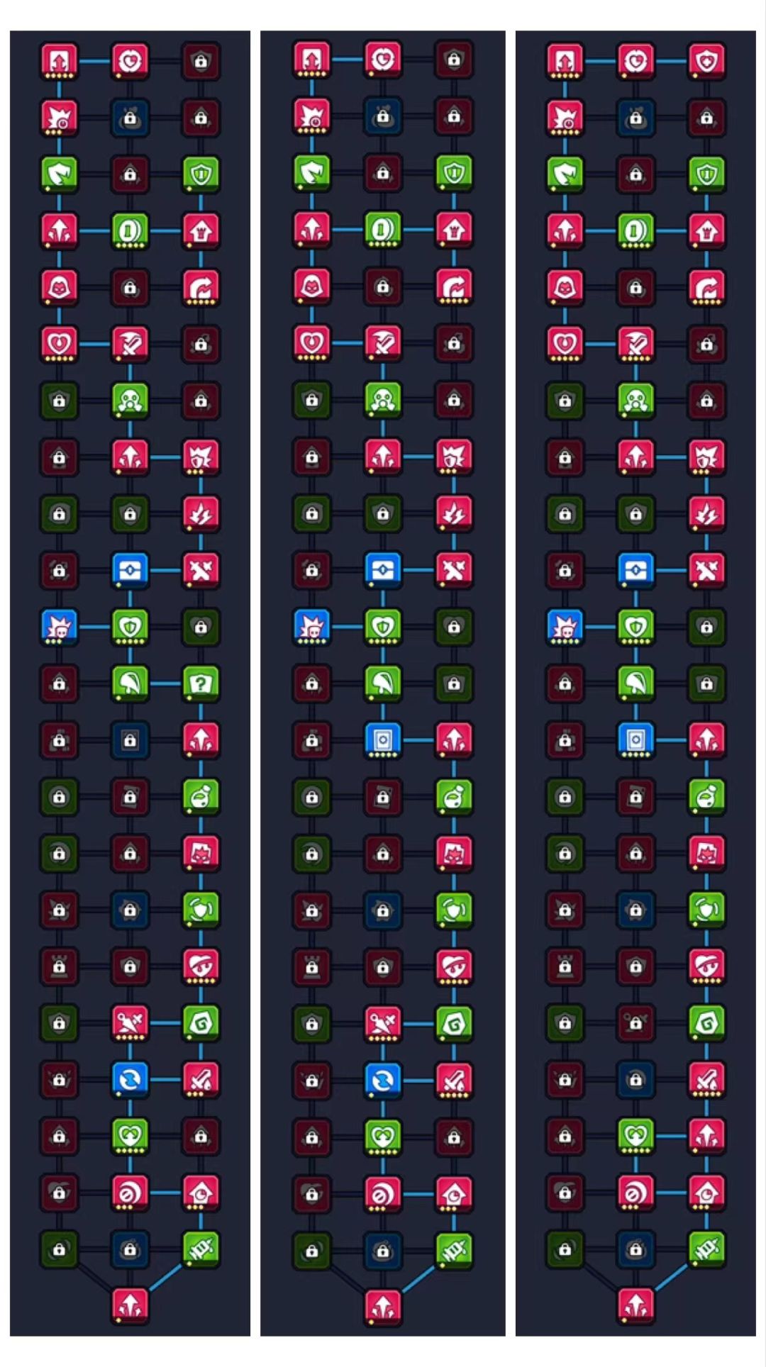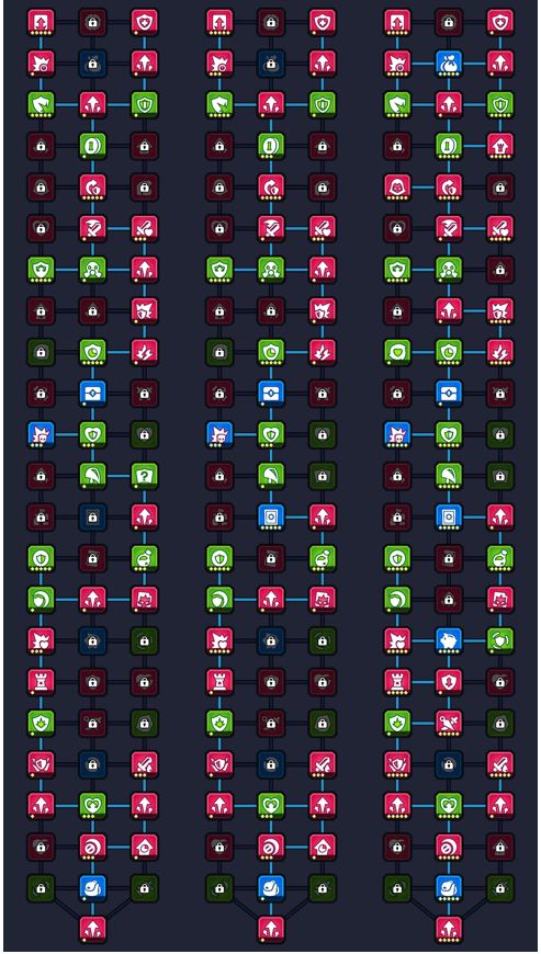 然后继续刷,刷到37天赋,0-1-4-7-10-13-16-14-15-18-21-24-27-30-33-32-35-38-39-42-45-48-47-50-49-52-55-56-57-54-59-5-62-65,除了16天赋其余的全部一颗星,总计37天赋点,基础已经打上了,继续刷7点,总计45天赋,更换天赋0-3-6-9-5-8-12-15-14-13-16-18-21-24-27-30-33-32-35-38-39-42-45-48-47-50-49-52-55-56-57-54-59-5-62-65,点满3和16,其余一颗星,增加移速,继续刷天赋到90左右后就像上面80天赋的玩法一样冲关,唯一不同的是80天赋那个没有点16。