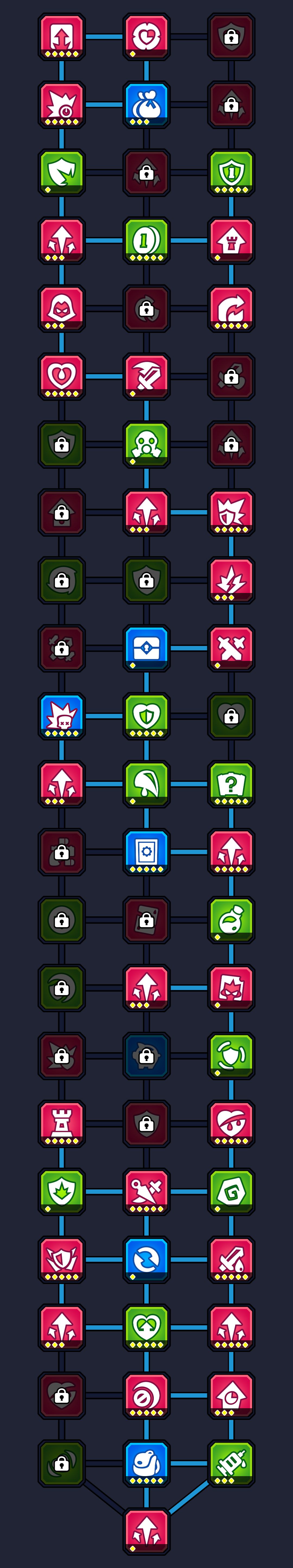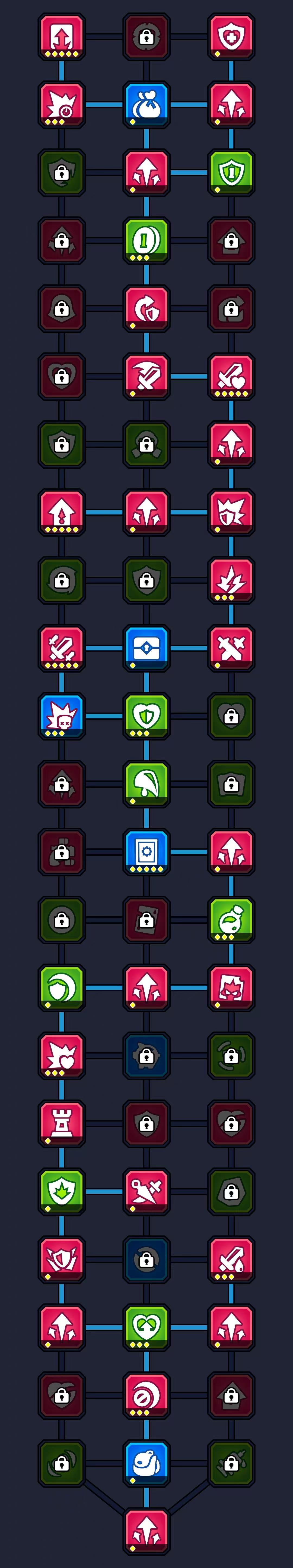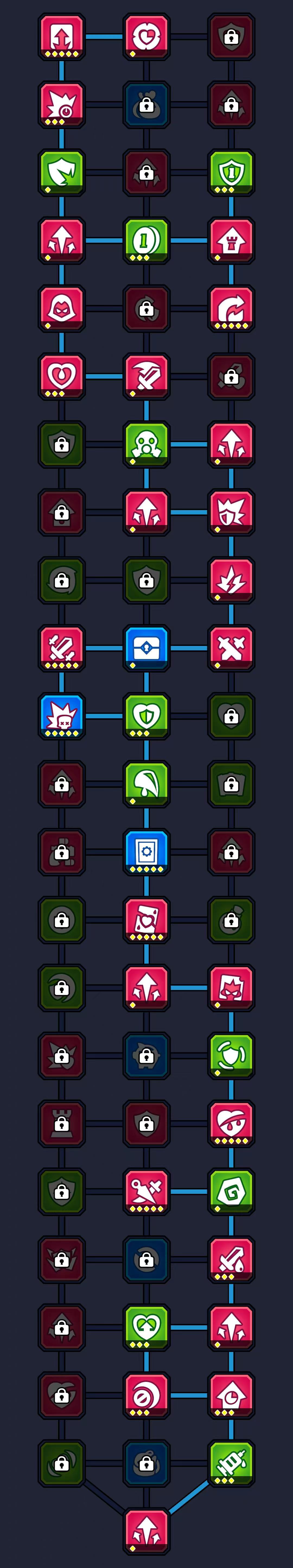 注意:前面6把都是要吃祭坛的,尽量把每个boss的3个天赋点拿到,打完第一把一定要点满16和62天赋,增加局内祭坛的出现概率和装备的掉落率,对后面冲关起到很大的作用,要不然你后面还要专门拿时间来刷装备