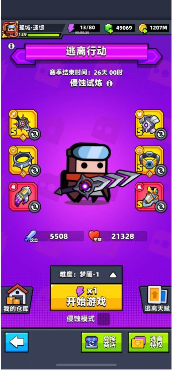 4560,噩梦5-梦魇4,保留进度梦魇1 (自爆),捡到金2和一个红色攻击装备