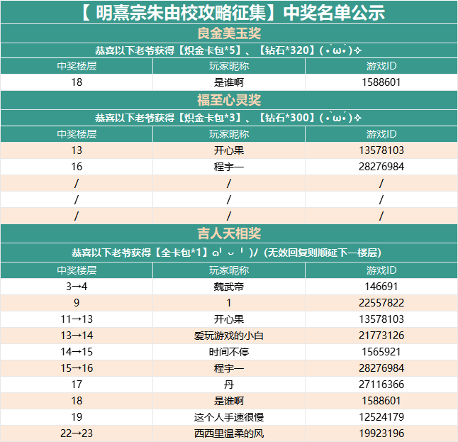 【已开奖】明熹宗朱由校攻略征集,创作赢取炽金好礼!