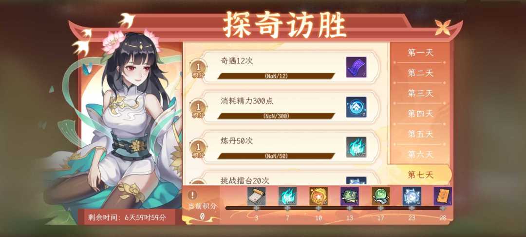 活动内容:活动期间每日开启任务列表,共7天任务,完成任务可获得奖励和积分,积分达到目标值可获得额外奖励。