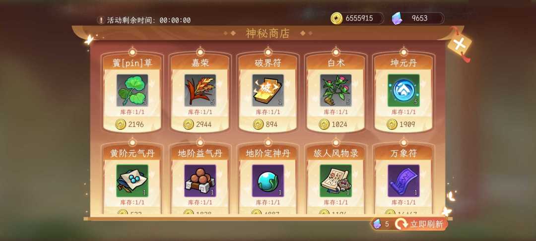 活动内容:活动期间,每天0点随机刷新商品,使用铜钱购买心仪道具,可用灵石刷新商店。