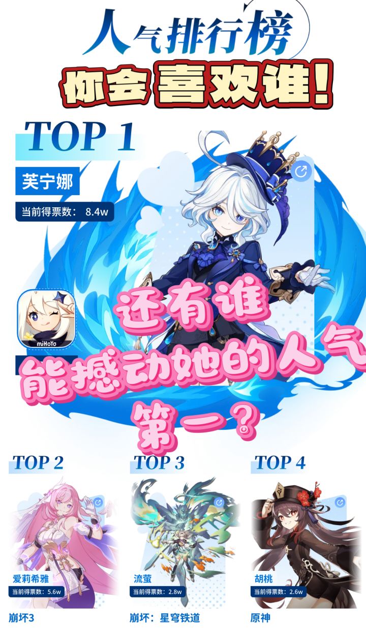 当然,也有玩家觉得她的机制需要一定上手门槛,但这并没挡住粉丝们的投票热情。相比之下,其他热门角色虽然依旧稳住粉丝盘,但在热度曲线上的确被芙宁娜甩开了不止一条街。