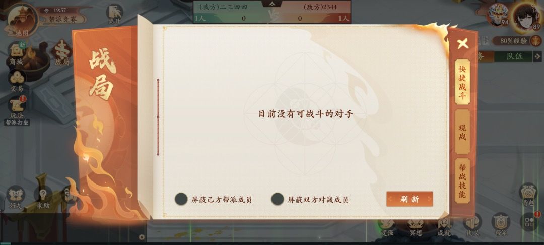 除了上面的基础改动,蛙哥也在帮战中优化了大家战斗的体验,比如说地图点不到人的情况,现在点击战局-快捷战斗,可以看到当前屏幕视角里可战斗的队伍,方便大家更好的进行对战。