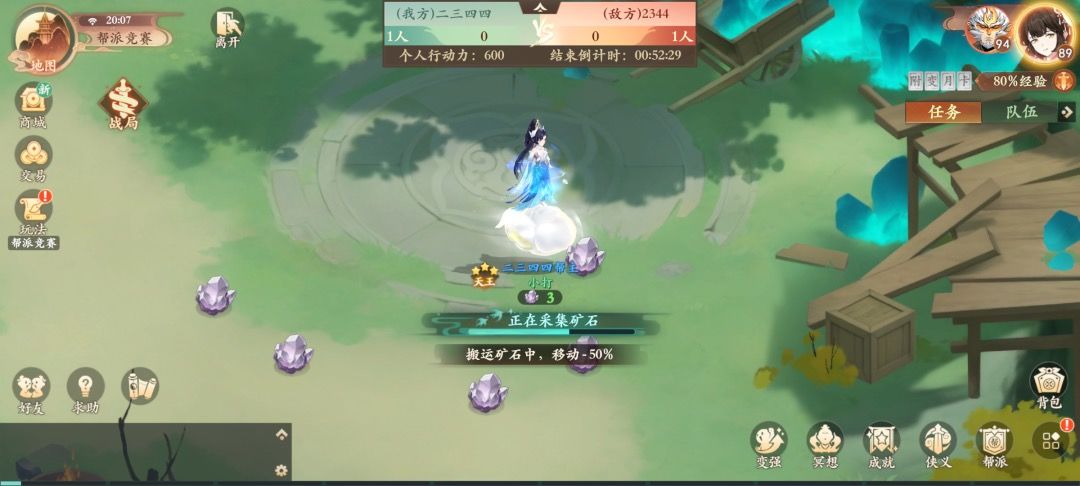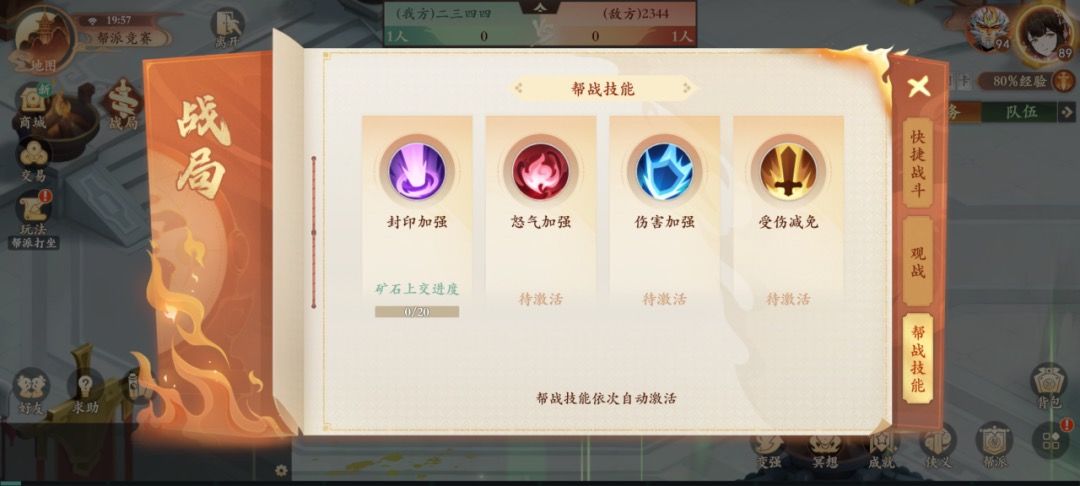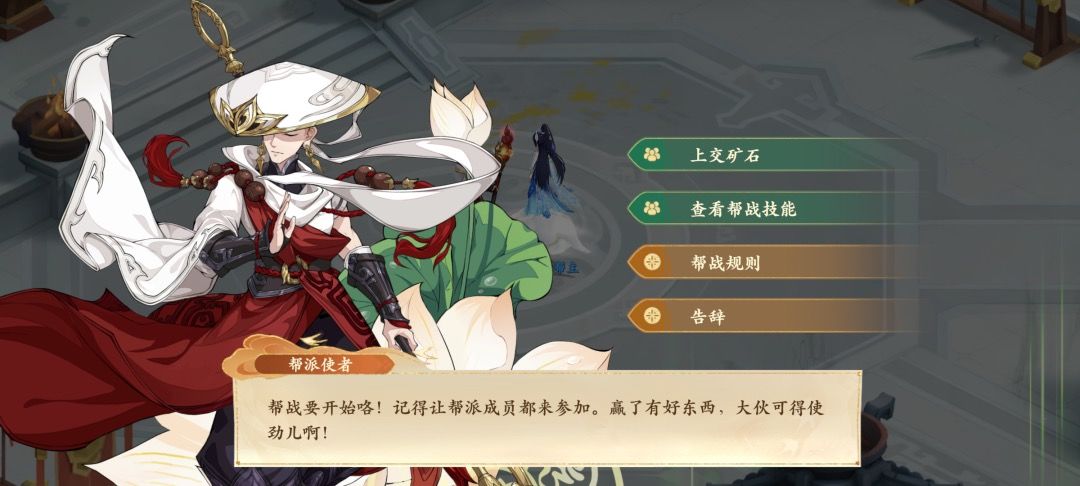 对话可上交矿石,上交矿石可获得帮战积分,也会解锁前文提到的帮战技能。