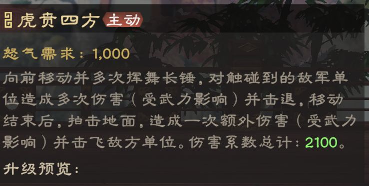 威震九州可以优先提升等级,在提高抗性后,可显著提升生存;折冲左右主要用来针对普攻系阵容,资源允许下可与威震九州同步升级。后续如果还有资源,可额外提高怒气技、虎贲武卫等级。