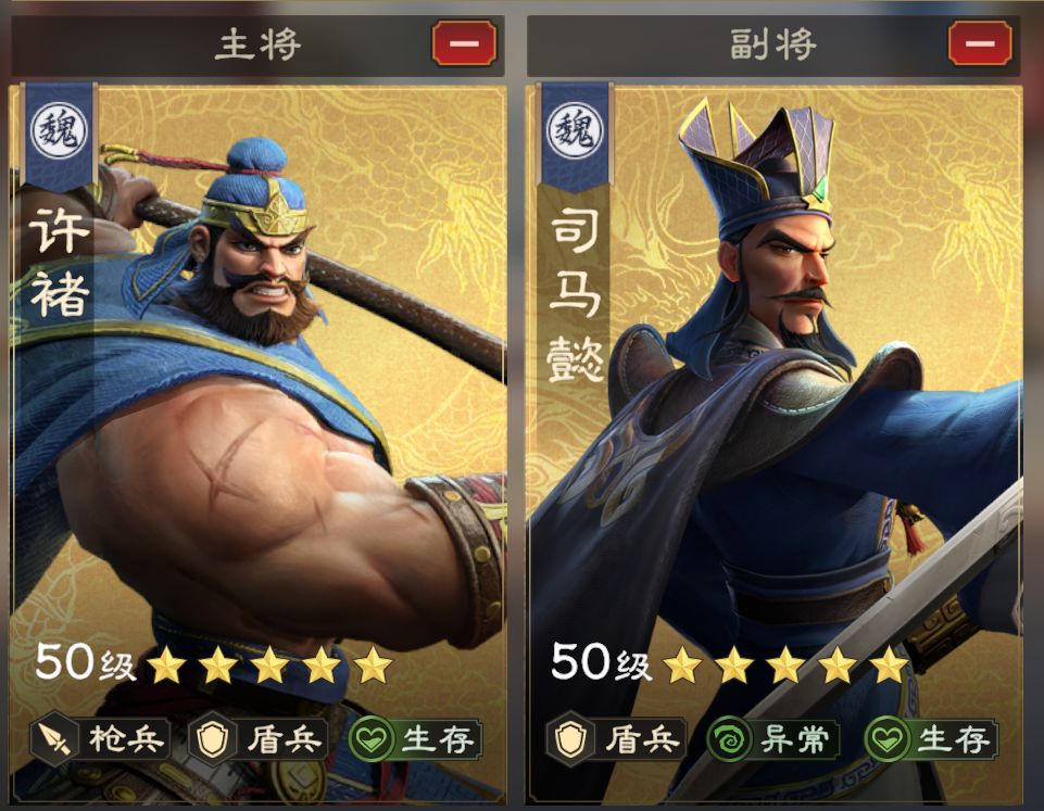 司马懿在部队普攻时可给目标概率附加中毒,在持久作战中可额外提高队伍伤害。在武将释放技能时概率提供治疗,与许褚构建“生存异常盾”是不错的选择。如果搭配司马懿,生存能力不如刘备,但拥有额外的输出能力。