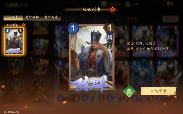 我看大家都在讨论和吹嘘识阵核心是陈群,我有不同意见,作为一个一费一战力武将,每回合都会回收,意味着保底第六轮必定要再放一次,这样也表示第六轮不能放六能量的强力卡,而且收益数值并不高若是识阵成功翻倍我就认可其核心地位,本身这个游戏就是一能量两战力,识阵成功才2战力,放一次要1能量,若是没有识阵成功相当于每轮让对面一能量。