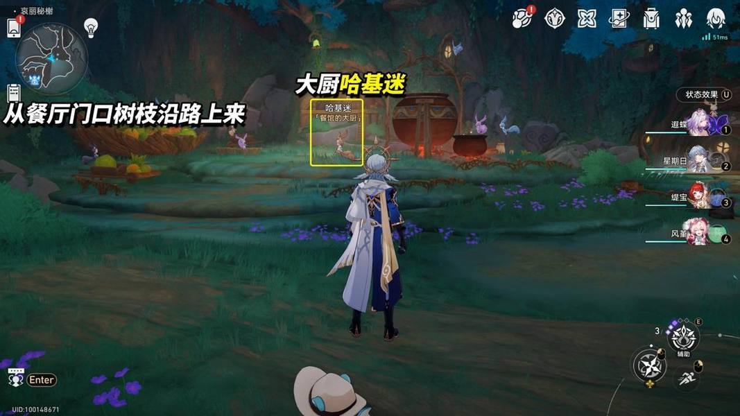 餐厅出去上树枝右转抵达地势更高的厨房,在锅炉不远处有一只橘色的大厨“哈基迷”;