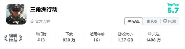 《三角洲行动》是由琳琅天上团队研发运营的新一代战术射击,TapTap下载数量超939万,近1500万关注。
