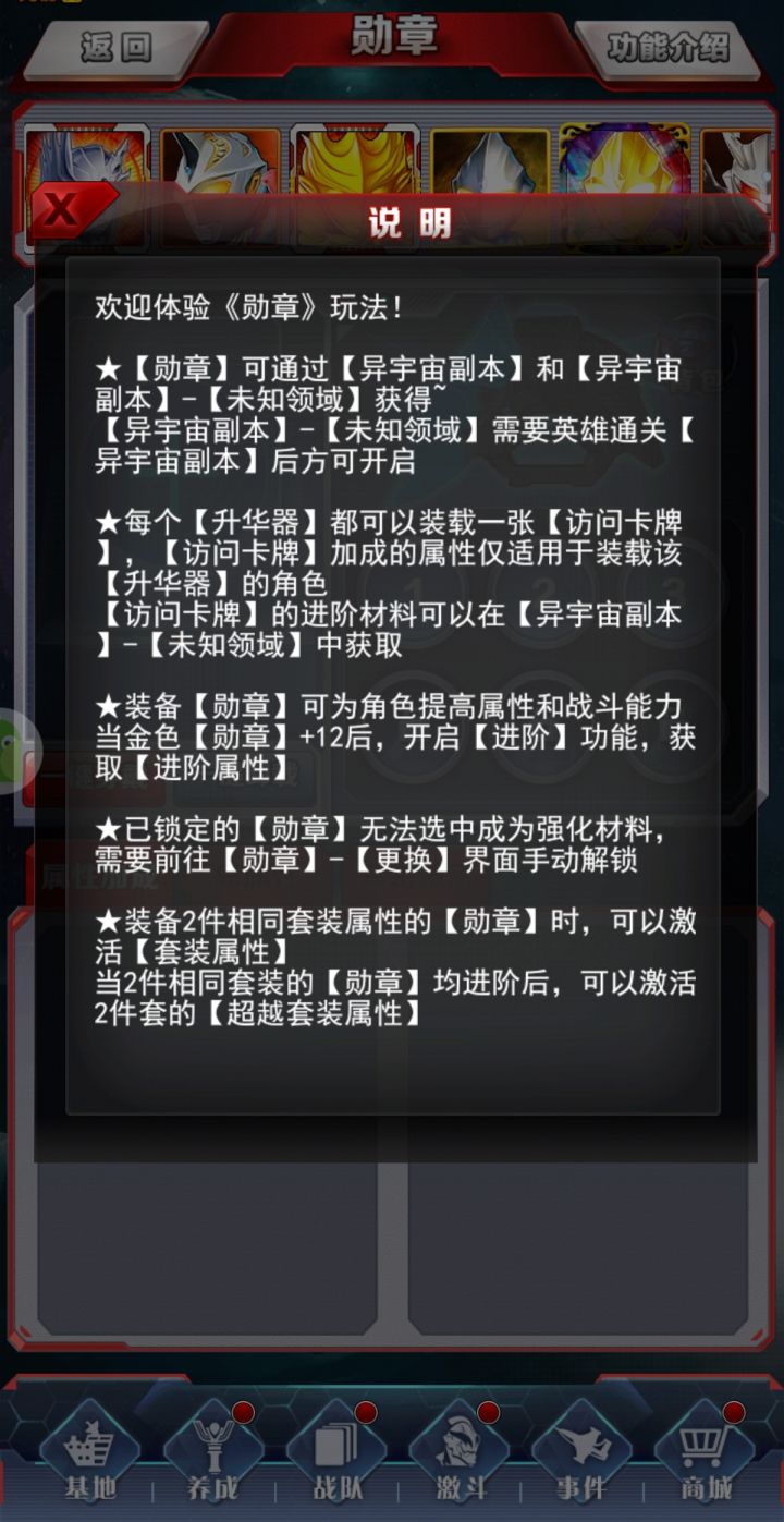 ★装备【勋章】可为角色提高属性和战斗能力当金色【勋章】+12后,开启【进阶】功能,获取【进阶属性】
