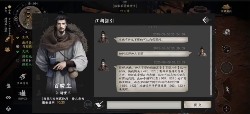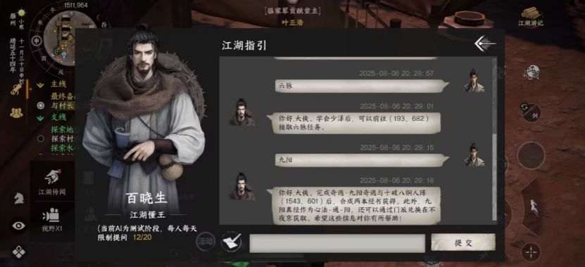 部分武学需要探索获取,不想探索的大侠们可以试试我们的“江湖百晓生”,我们接入了AI持续喂养攻略。感谢所有为我们提供攻略的大侠们!