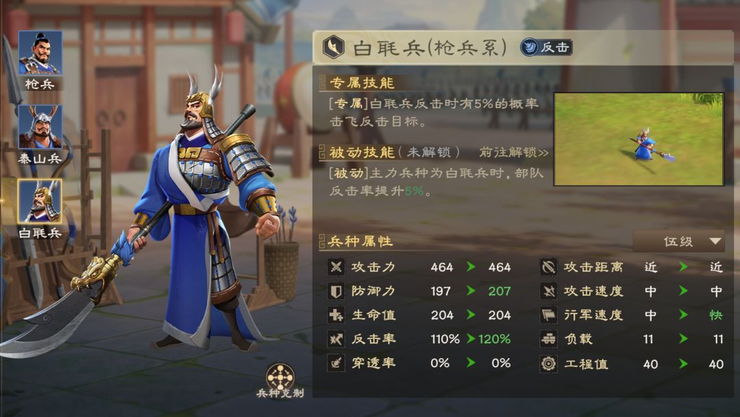 兵种:白毦兵(提升反击率)