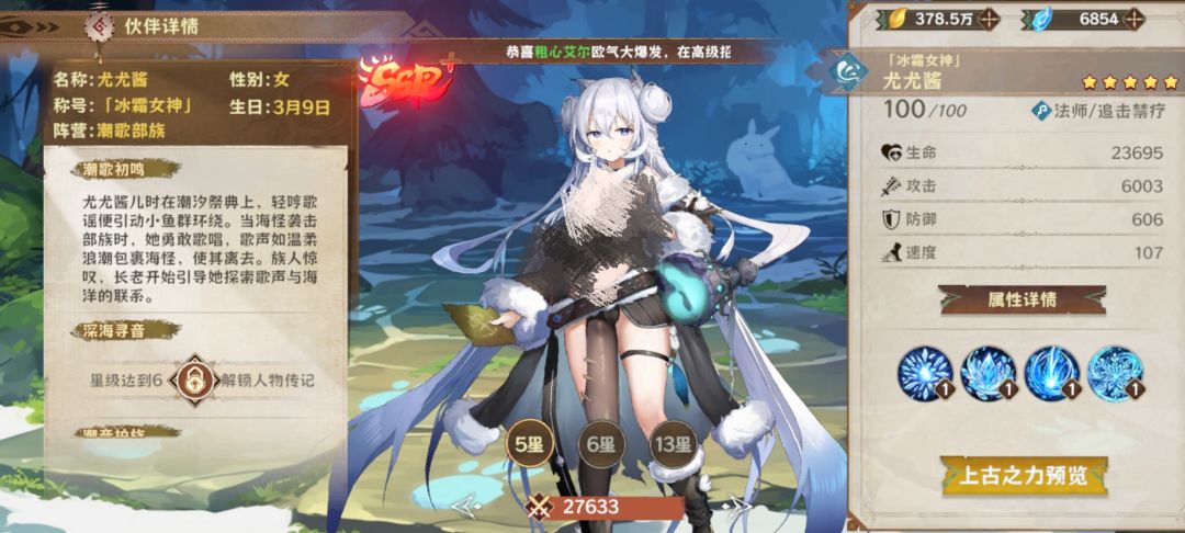 输出甚至比很多ssr+更高,本体获取容易,是前期输出主力