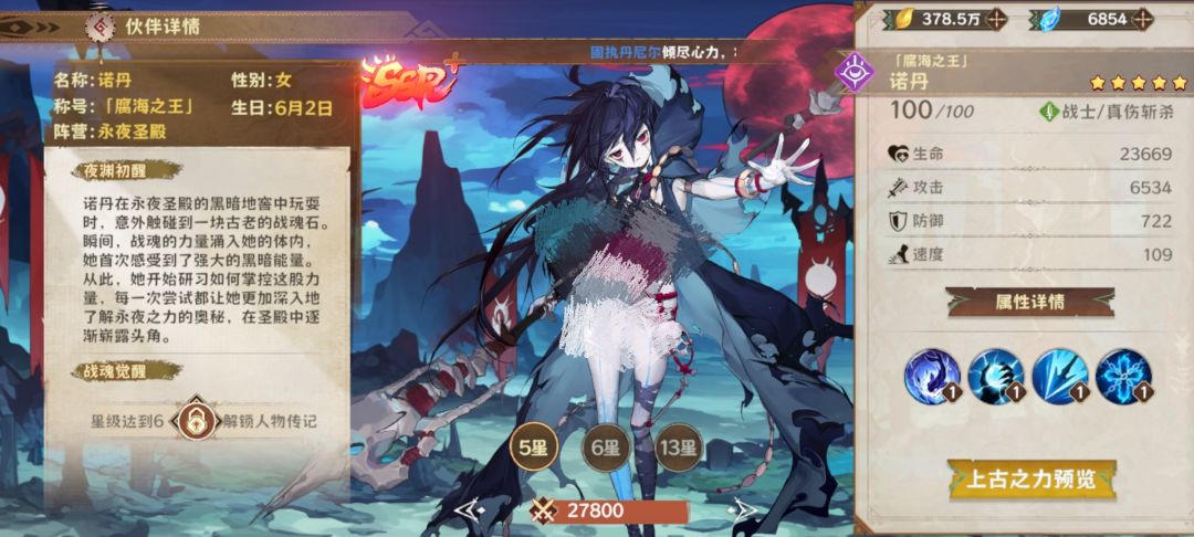 因为是开服活动角色,所以放第一个说,在隔壁已经被爆金币了,但是在这个游戏刚开服阶段还是强度之巅,暗队指定核心,缺点是造价较高,如果版本节奏和隔壁差不多的话等平民暗队成型型不久就会有更高一档的sp来爆暗队金币了,可以玩,但如果是强度党的平民建议去玩光队或者混搭队(注:本人玩暗队)