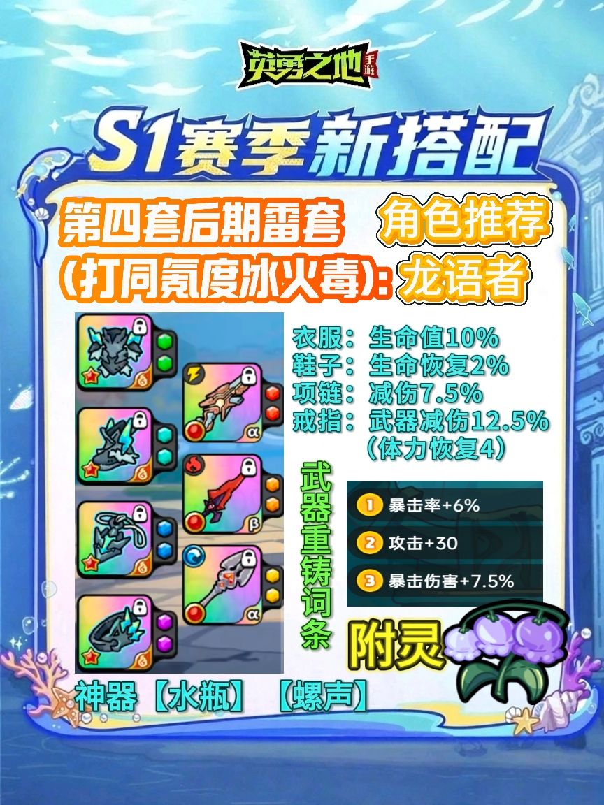 第四套肉雷套:打同氪度冰火毒,角色推荐龙语者,详细内容看图