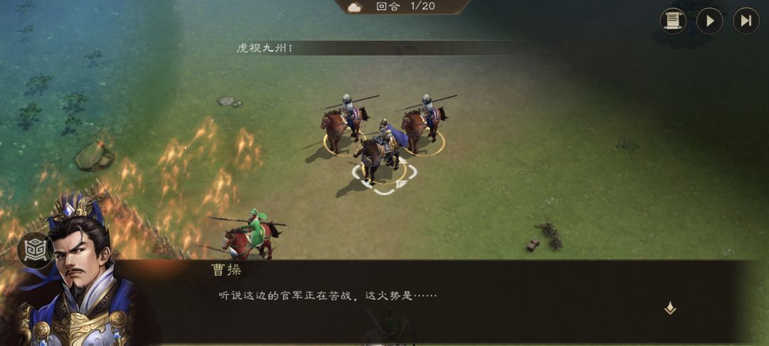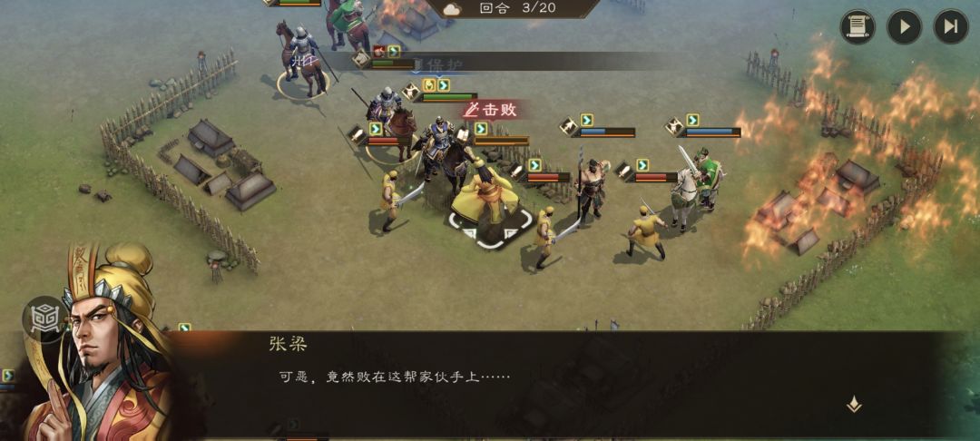 1.曹操需要走左边先对话张宝,否则他第一回合就死在三人组手里,无法三星过关。