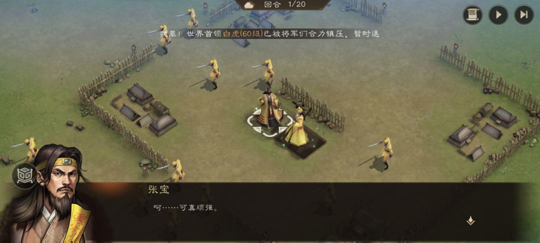 张宝第一回合必死,死了之后下一回合曹操可以过去对话。