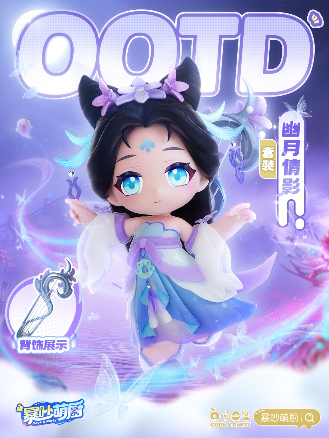 传说时装「幽月倩影」上架赛季扭蛋机,全套外观部件包含:发型、衣服、鞋子、背饰及面容。