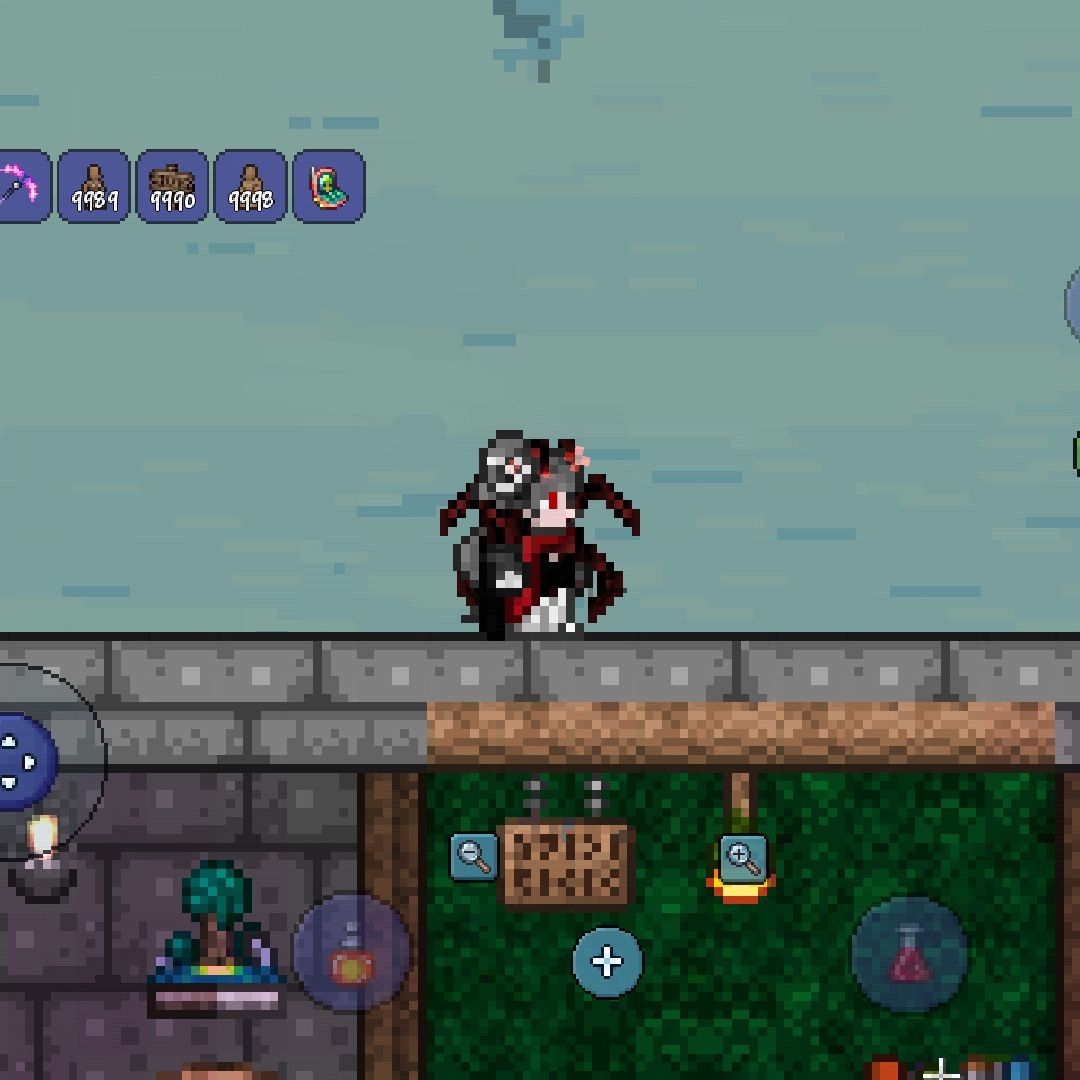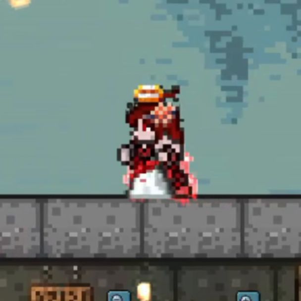 选用俏皮的红-黑-白配色,层次分明互不杂糅。毕竟玩游戏不能总开着2.00×倍率观察,为了行路方便必须考虑0.58×下的效果。此时像素细节失真,颜色区域分配更加直观。