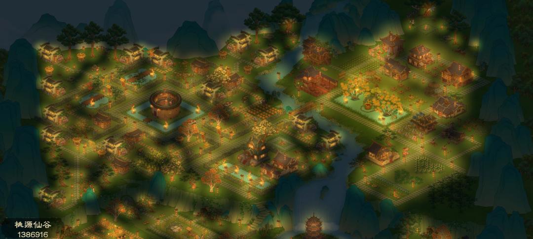 桃谷分为种植区、养殖区、居住区、商业娱乐区四个区域。有点强迫症,尽量整齐对称了