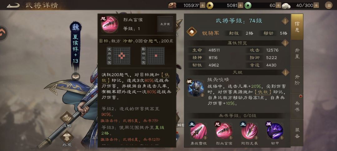- 致命劣势:除了单点,其他全拉胯——群体伤害1星,推图清杂效率极低;伤害范围是十字(兵书等级高了才扩到菱形),无法斜向攻击/反击,泛用性差。