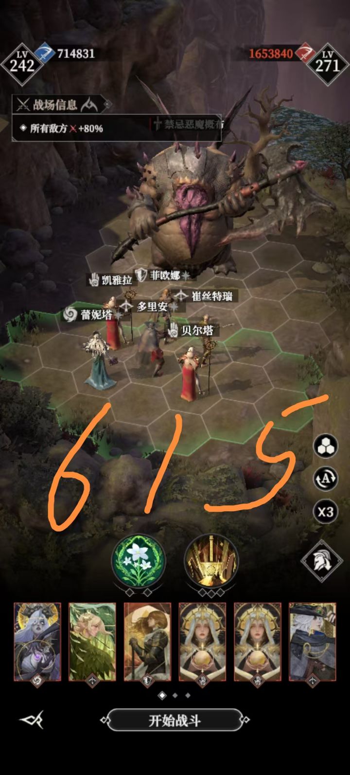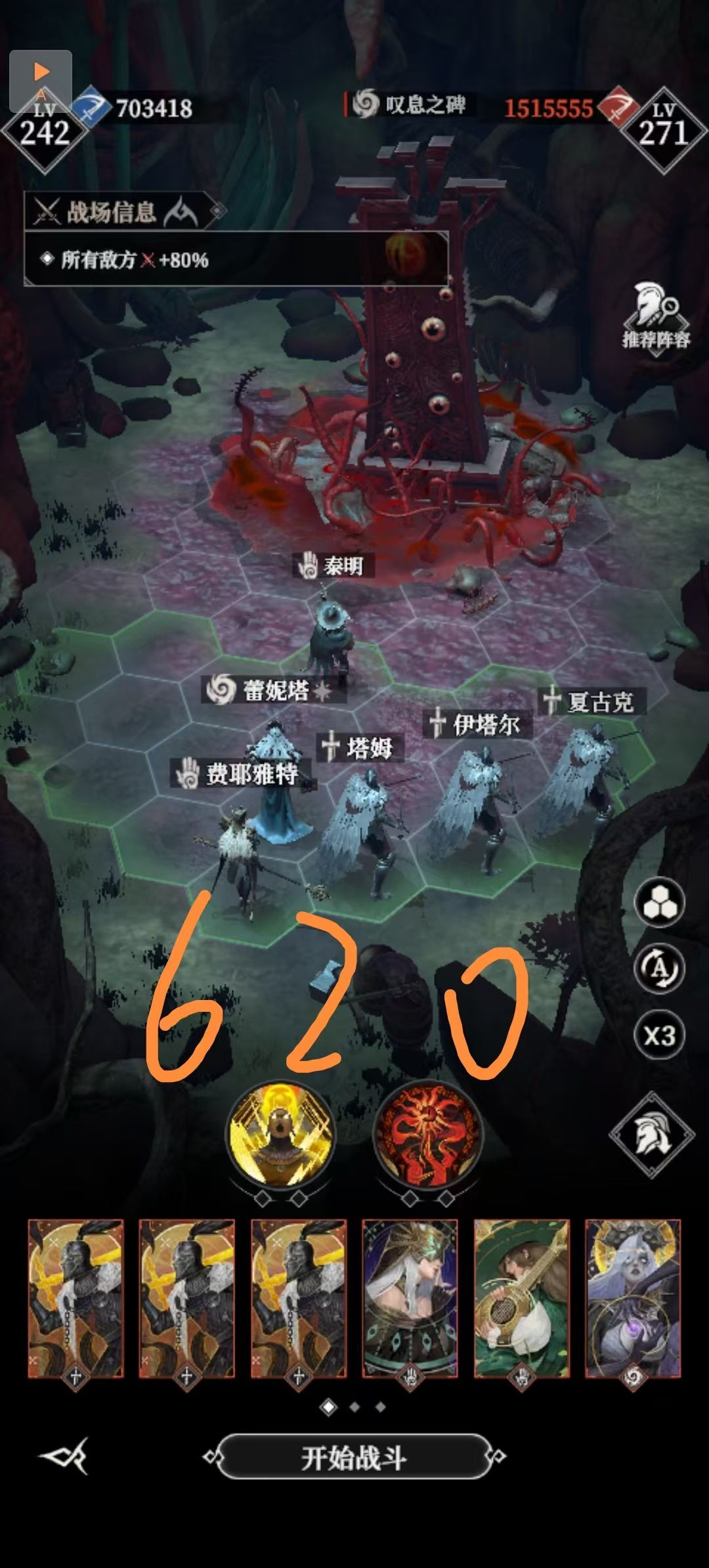 其他也没什么好说的,620大约说下,3个黑武士,其中2个是吸血套(其中一个还穿着这次的那个30级的氪金吸血鞋,临时用代金卷去抽的,这样吸血有50%,另外我没有铁重铸,就相差一点生命,无所谓了。)另外一个是佛罗瑞尔套,主要是吸血套不够(为了过这个,我把这次送的那20个红武器都抽了,悲剧)。其中骨女可以换鹿头,我是鹿头怎么也打不过,换了骨女就挂机了几次就过了。可能刚好契合了节奏,具体是什么节奏,我也不懂,反正就是节奏