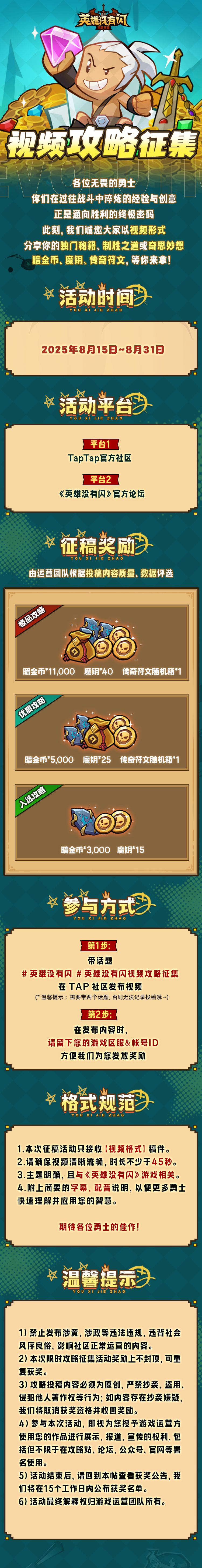 【丰厚奖励】英雄高光操作,视频攻略征集等你来秀!
