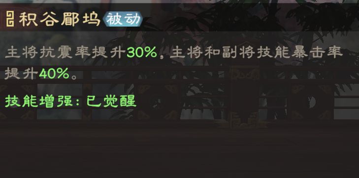 貂蝉可提升主将抗震率,降低主将受到的反震伤害,并且可大幅提升武将暴击率,提高技能整体爆发。被动寒蝉复鸣可大幅提升主动技伤害、暴击伤害,进一步提高输出。技能阵容都需要通过“暴击”乘区来提高技能爆发,可快速压低敌方部队兵力。