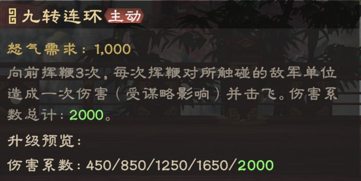 羁绊:2人同队激活美人连环(布阵选择阵型生效),提升部队统兵上限