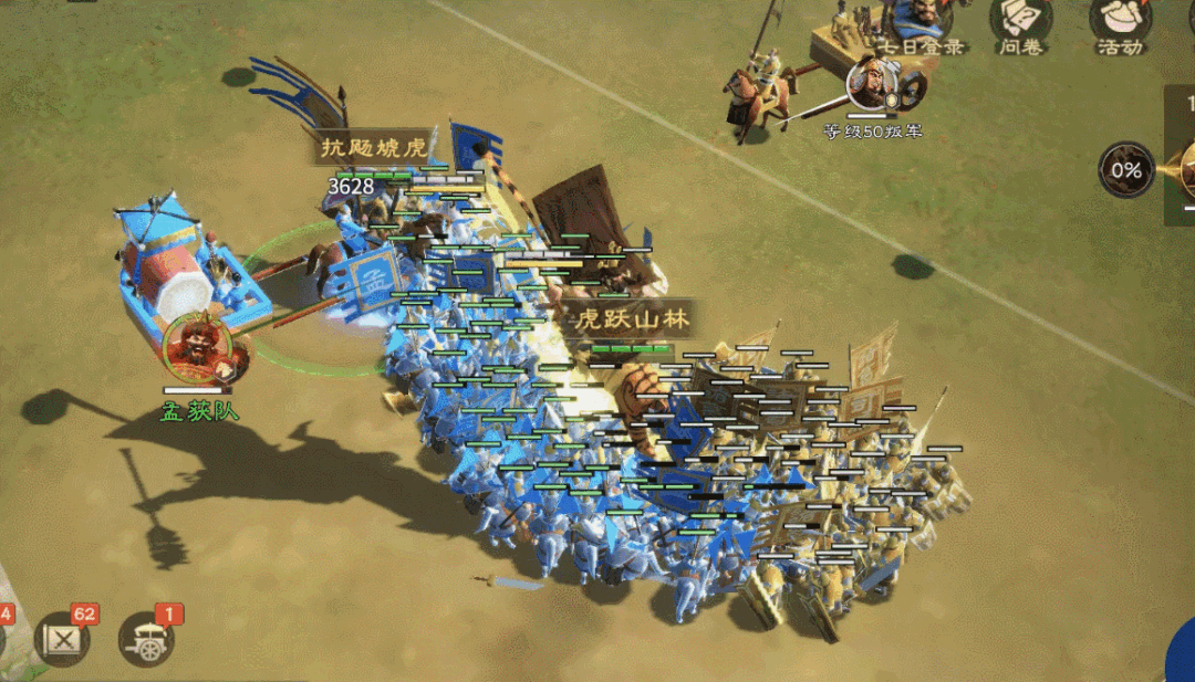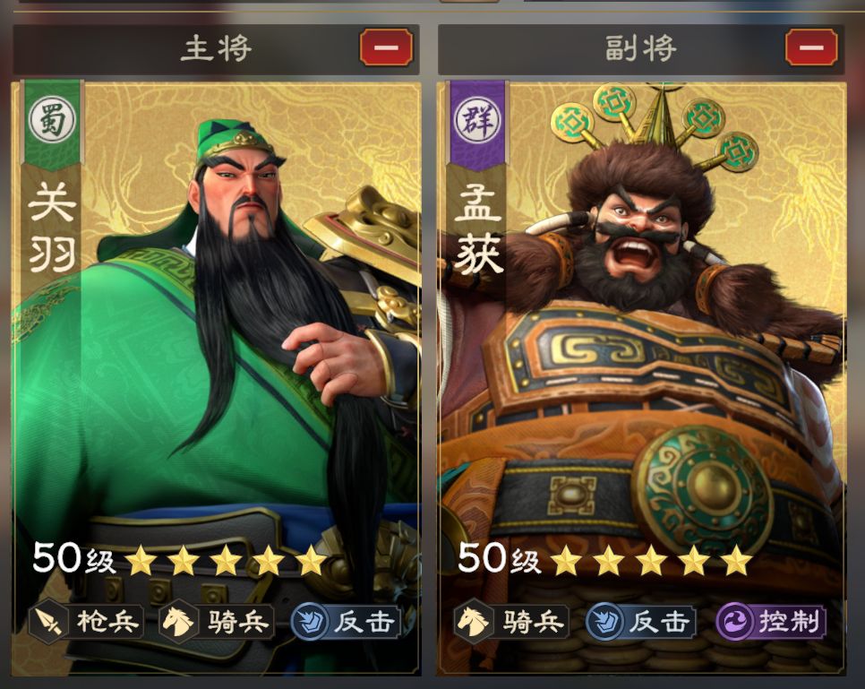 除了以上两支队伍外,孟获也可进其他的控制、反击体系打工,这个武将比较百搭,就是数值稍低一些、没有亮点。孟获可通过“七擒孟获”活动免费获取,是比较好的开荒武将。孟获组建的反击骑、控制骑主要都是用来打慢速作战,走控制路线打叛军、蛮族可以更好的控制战损。。