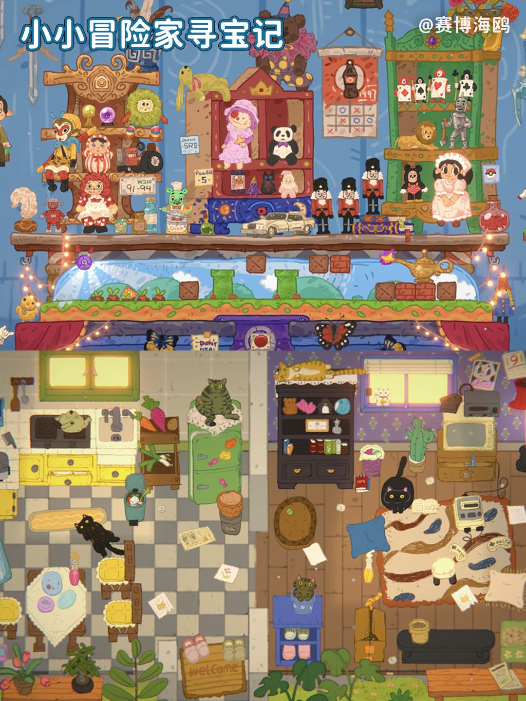 很喜欢这个游戏的画风,像在看绘本,色彩舒服鲜明,细节丰富。玩家要在小地图中寻找隐藏物品,随着剧情推进,难度逐渐增加,还能和场景互动