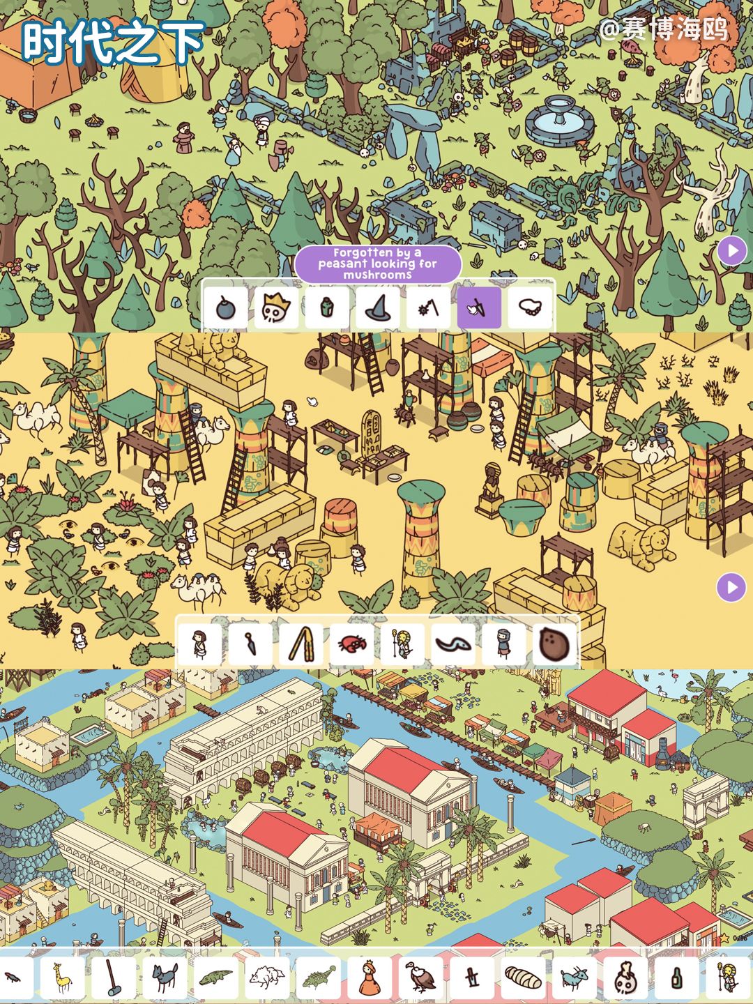 可以穿越世界的壮阔历史,从石器时代到西部大拓荒 ,在多彩手绘关卡中寻找失散各处的物品,帐篷要掀开来查看、大型建物交互能看到里面的内容。游戏还有地图编辑器,能自己设计关卡,自由度加分