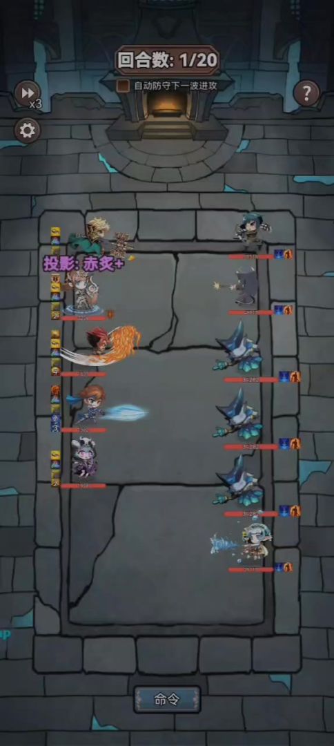 其实可以三队打,但因为实战被后面的大恶魔打破防了,就放弃了耗药较多的毒队节约补给。龙枪狂战打裂影都很方便,有稀有特质锁头,只要有一个英雄比裂影速度快就可以开局破山锤+开天斧全力输出裂影3回合,后面如果打不死召唤分身就用死神之镰清除,然后补个不屈盾扛过自爆buff时期。