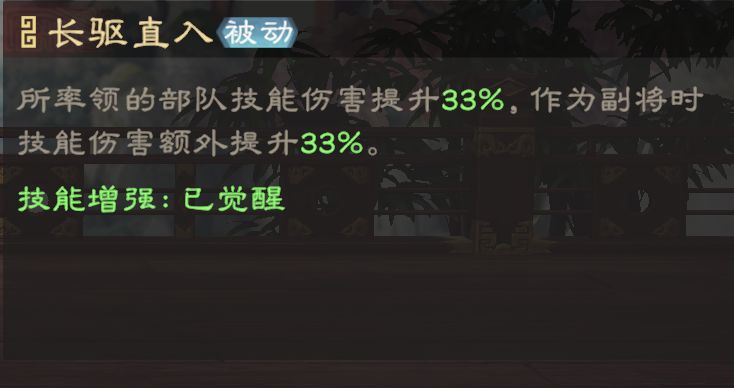 技能升级这块大家可以灵活调整,如果想主打控制(比如搭配控制武将),可提升十胜之论的优先级;如果想通过技能打伤害,可优先提升怒气技、长驱直入等级。