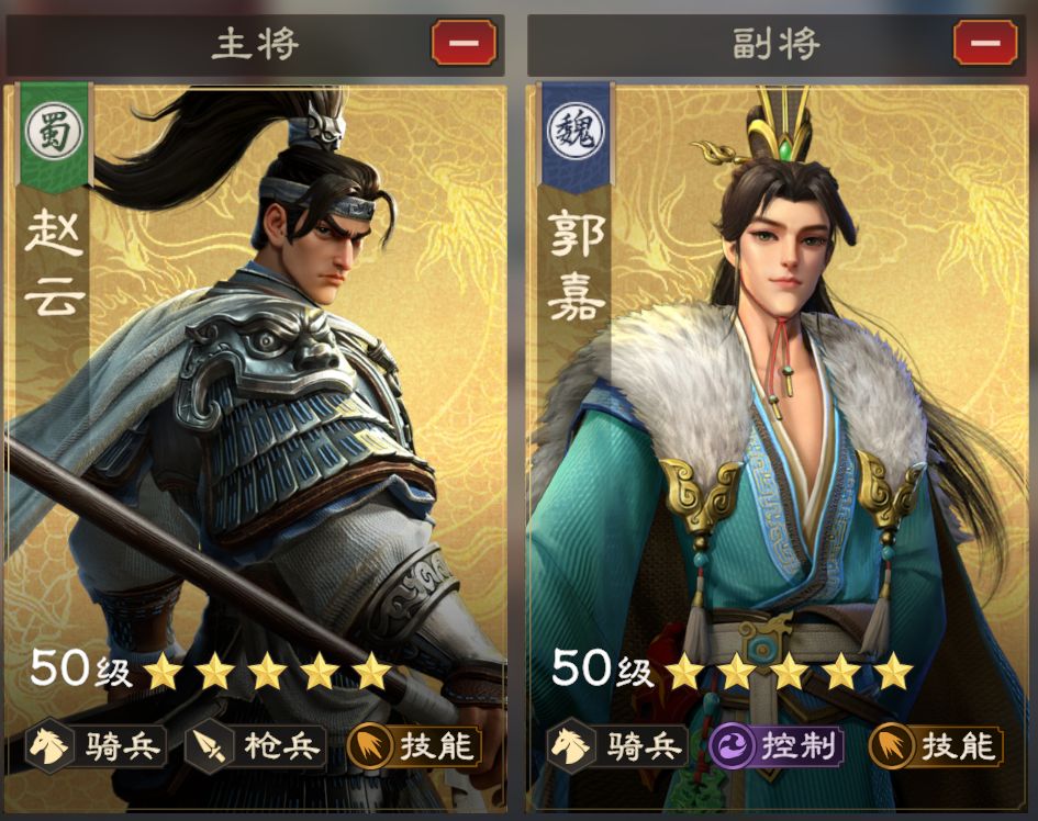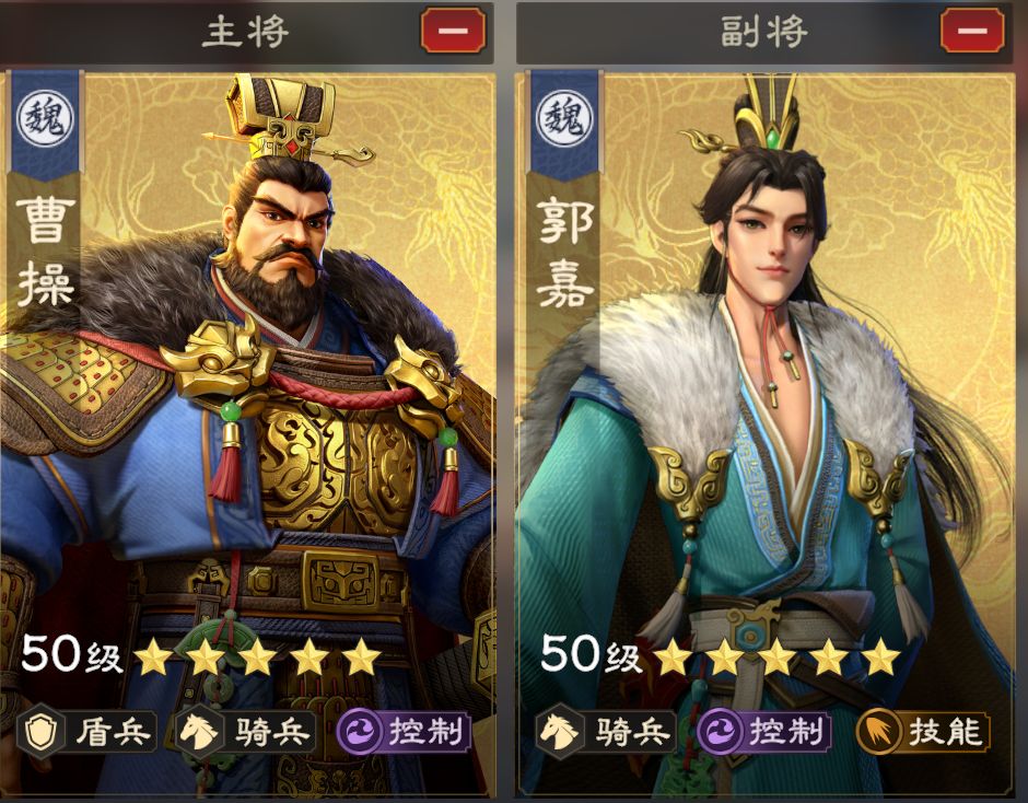 郭嘉可直接提供高额的技能增伤,可额外提高队伍的初期爆发,并且有控制能力,属于偏万金油武将。除了以上两支队伍外,还可搭配张辽、吕布、黄忠构建技能骑阵容。作为高输出骑兵队,可针对各类盾系阵容,也可利用机动优势,快速近身弓兵队伍(弓兵队脆、扛不住伤害),削减其兵力。