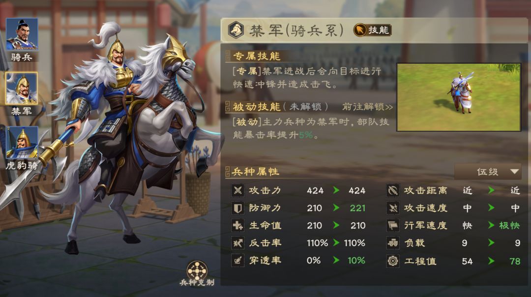 兵种:禁军(提升技能暴击率)