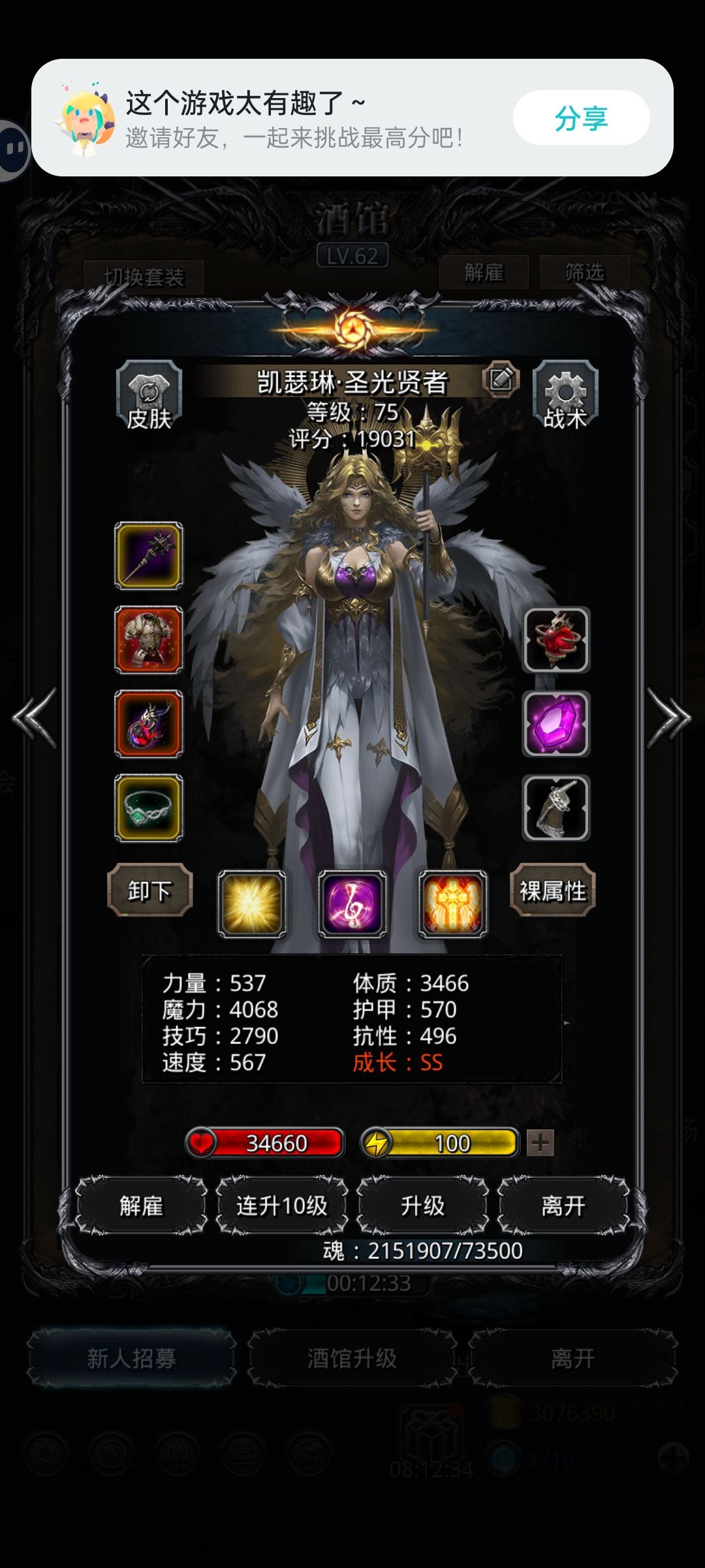 卡了两周多终于过了,发出来给还卡着的朋友们做个参考。我是五柱80过的,蛮子81,法师82,奶妈84,枪80,其实枪74的时候就能过了,奈何蛮子这个笑出声一直演我,起码三十把,没五柱80前,按这个属性(枪手加了六级柱子,人物加了5级等级)后面基本都是差10-60万左右,后面受不了了,分了几个自升魔石换了金币秒了枪手圣迹到80四把就过了,蛮子四分四十秒多的时候又暴毙了,还好传猎最后出了几下特效打过了。攻略那个三分钟的问题有时候有,有时候没有,我是全程挂机过的。